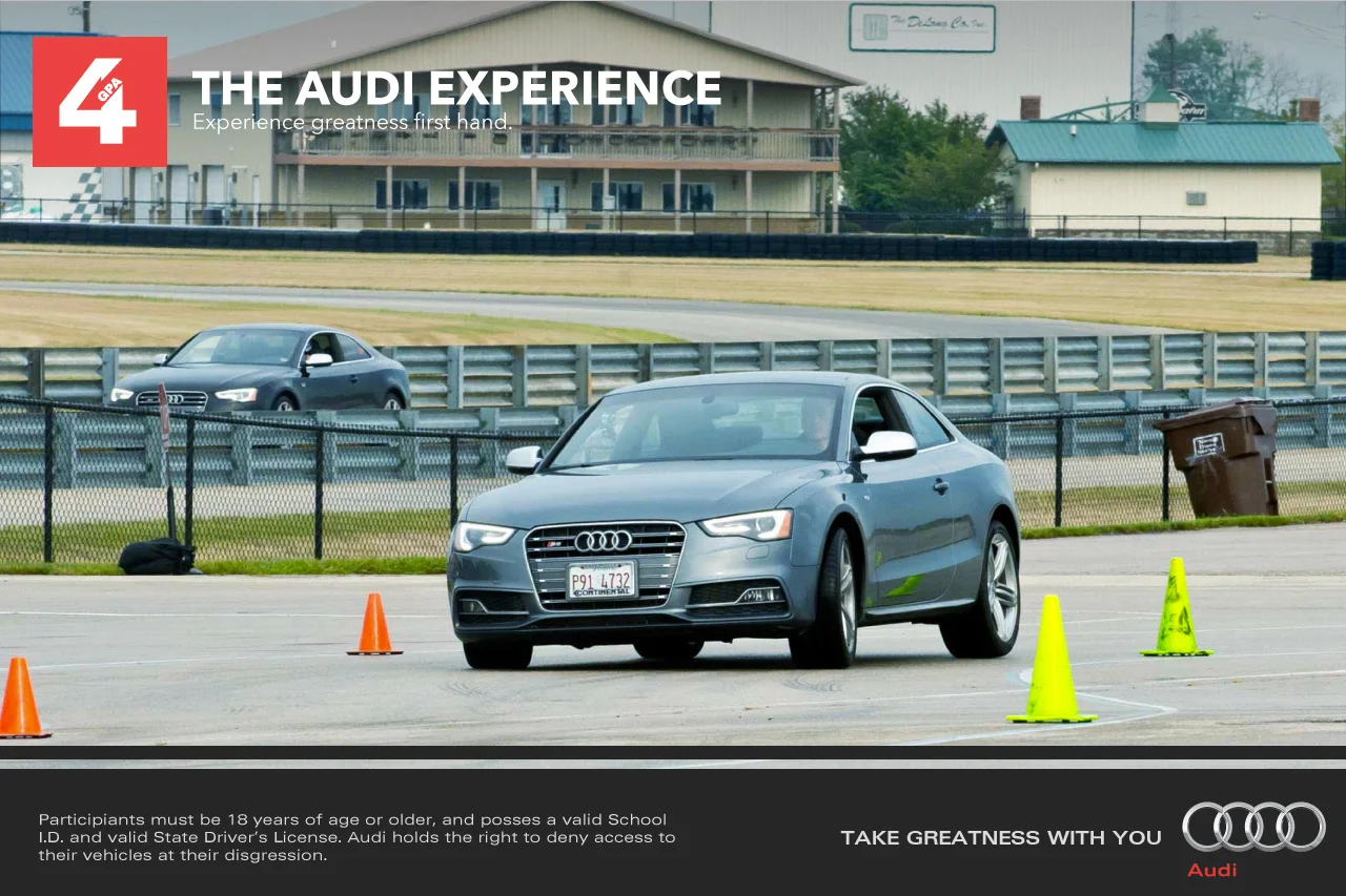 Audi will sponsor several driving experience events at multiple universities. A valid college ID and driver license will allow students to test drive a new Audi around a closed track.