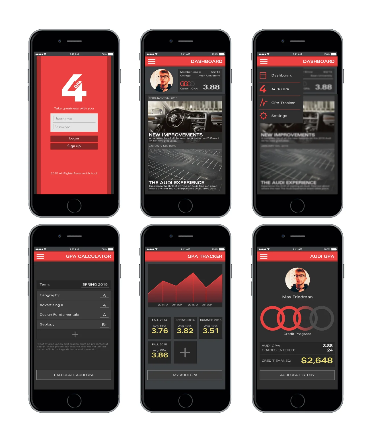 The Audi 4GPA mobile app allows students to track their academic progress. Every semester an award estimate is calculated based off the final grades the students input.