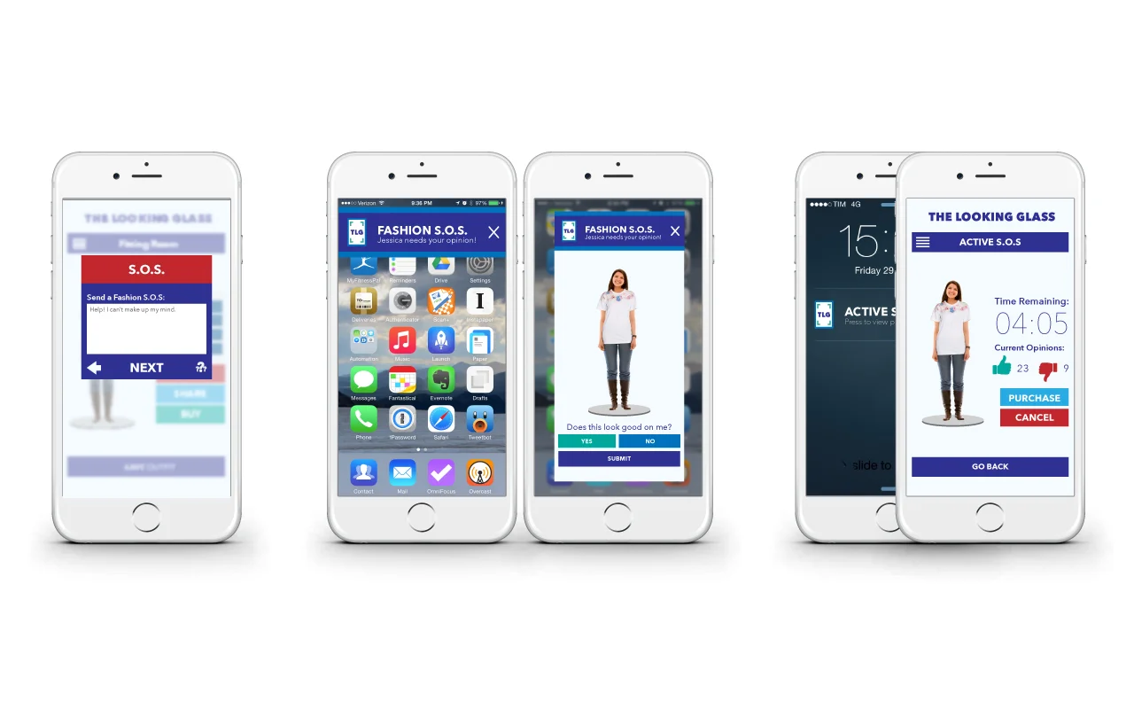 Using the The Looking Glass app, customers can view and virtually try on clothes from multiple stores inventories. Outfits can be saved, purchased, and shared amongst friends.