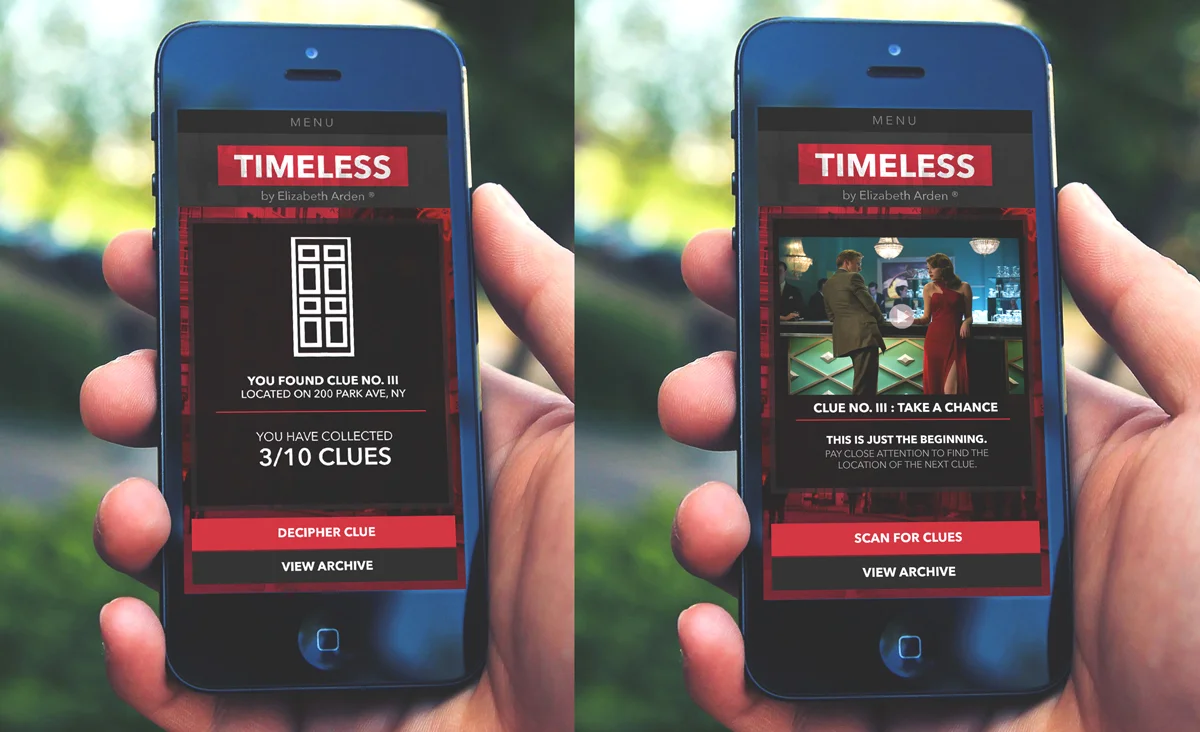 By using geo-tagged clues, participants are able to live the Timeless story by going on their own journey. Clues will be scattered in different formats throughout the city, and participants will decipher them using their phones. The first 100 to complete the scavenger hunt are invited to a special Elizabeth Arden launch party.